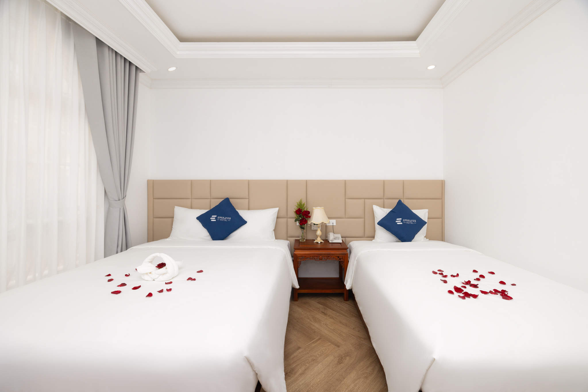 Tọa lạc tại trung tâm Sunset Town, An Thới – một trong những điểm đến sôi động và lãng mạn bậc nhất Phú Quốc, Emirates Hotel là biểu tượng của sự tinh tế, được lấy cảm hứng từ những cung điện tráng lệ vùng Địa Trung Hải, khách sạn khoác lên mình vẻ đẹp cổ điển, vương giả nhưng vẫn hòa quyện với nét hiện đại và tiện nghi bậc nhất.