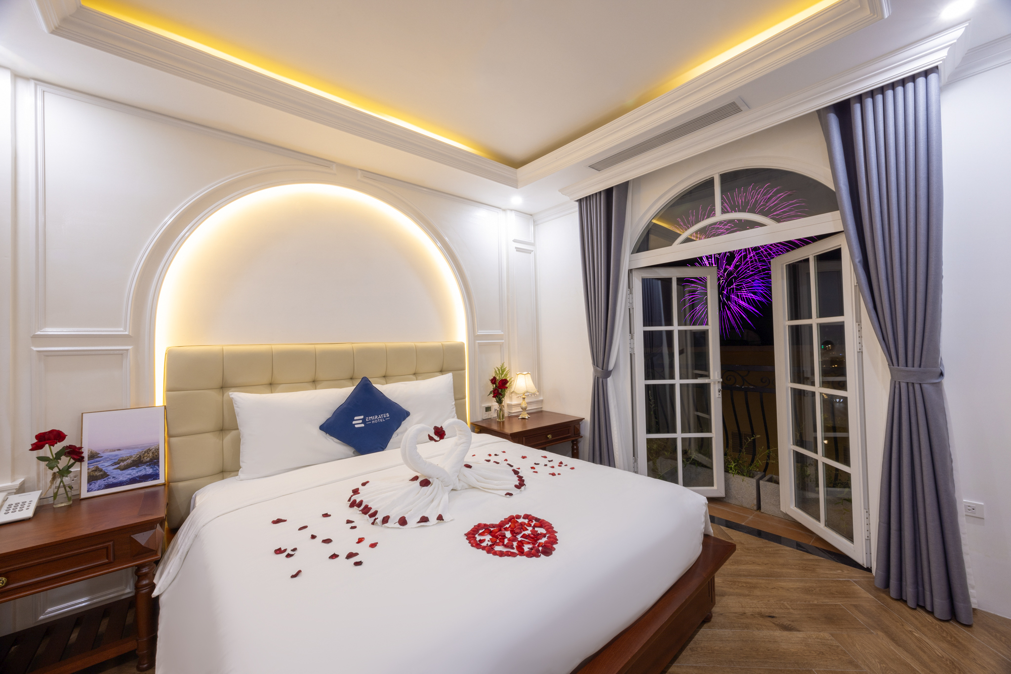 Phòng sang trọng hướng biển phù hợp cho các cặp đôi muốn tận hưởng kỳ nghỉ thư thái, lãng mạn. Với thiết kế rộng rãi, trang nhã và cửa sổ lớn hoặc ban công riêng với tầm nhìn hướng ra biển và thành phố giúp quý khách đắm chìm trong khung cảnh hoàng hôn rực rỡ và làn gió biển mát lành.